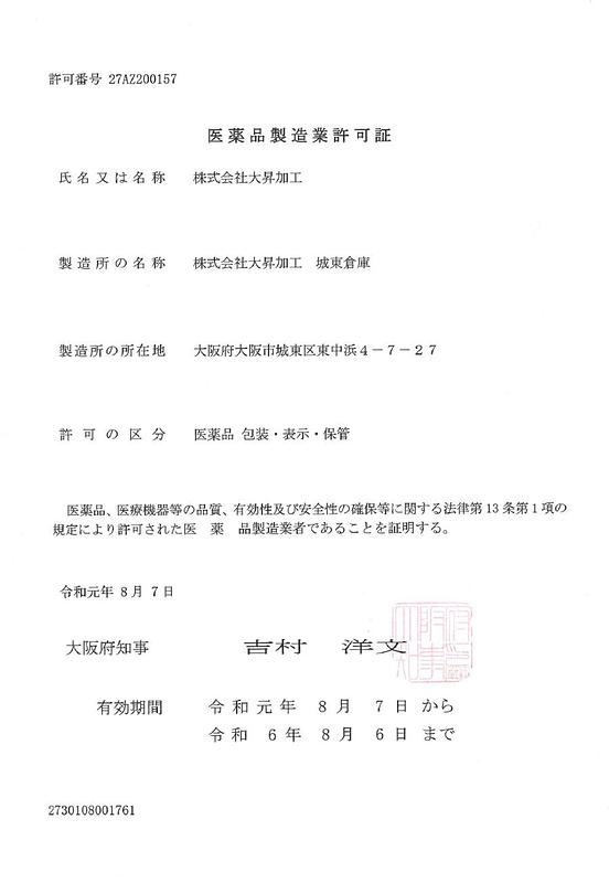 この度、弊社城東倉庫は「医薬品製造業許可」を取得しました。